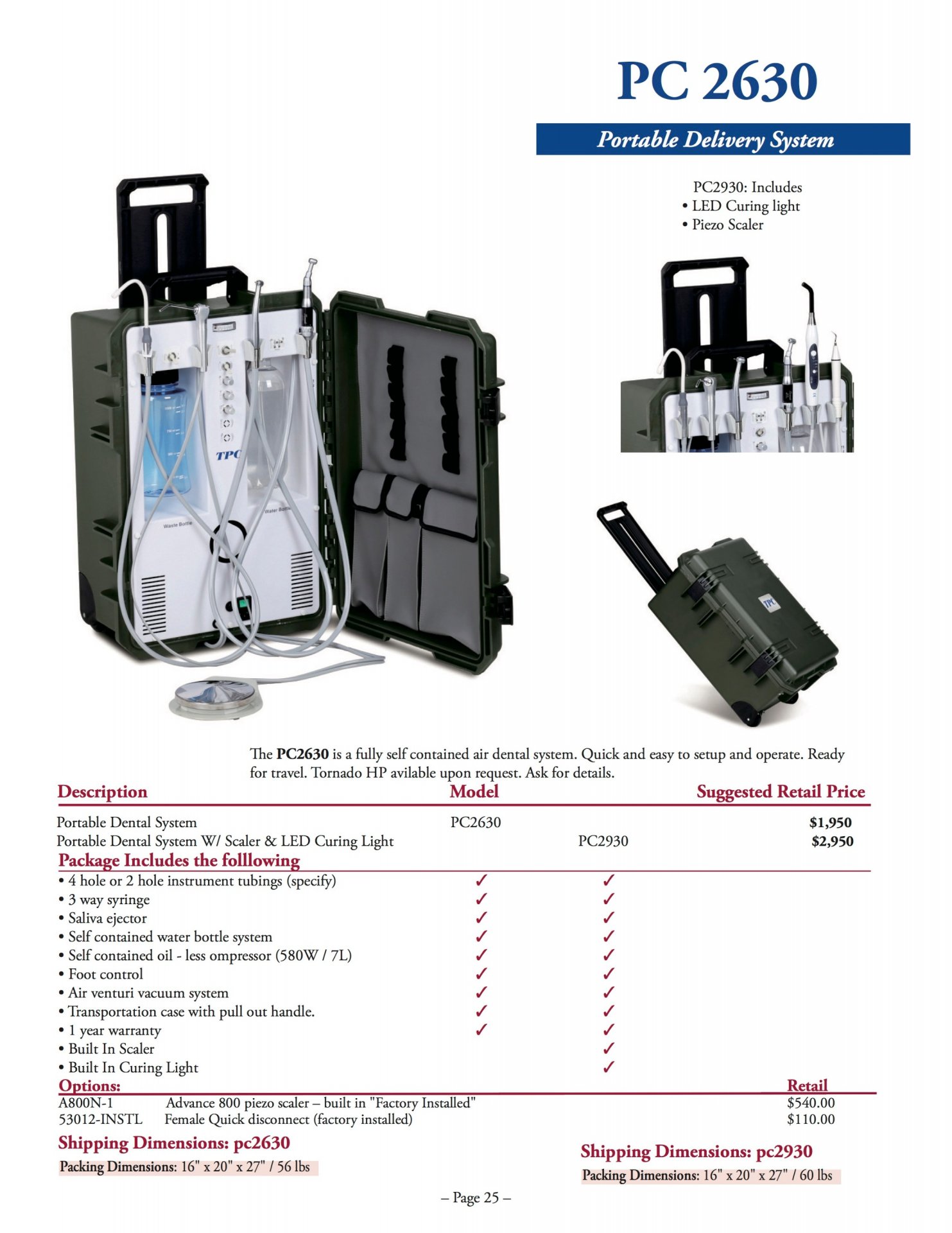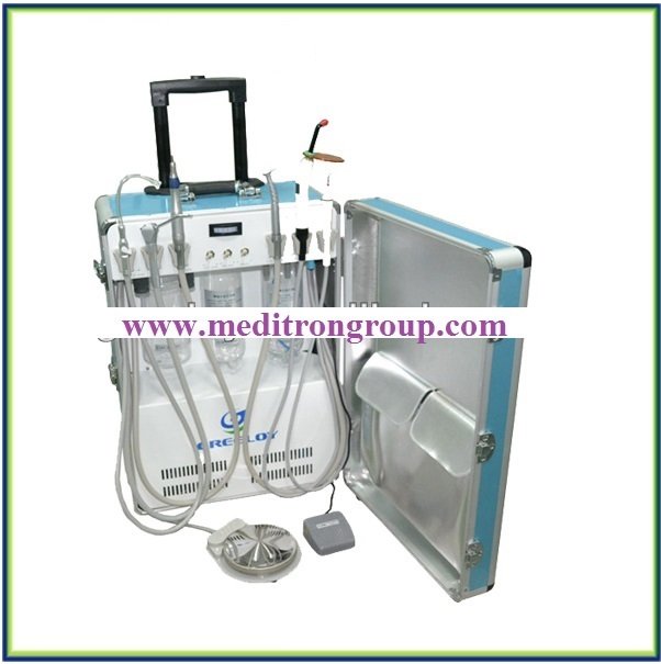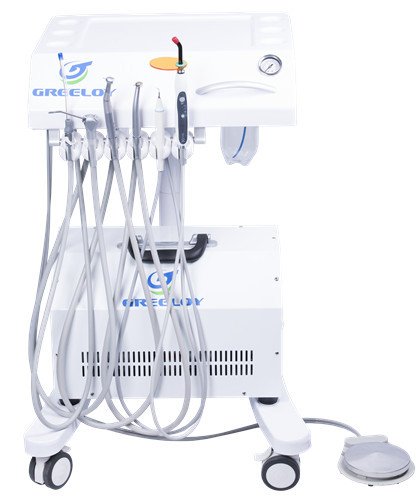 Mobile dental unit complete with builtin suction, compressor, scalar,lightcure,cleanwater system, handpieces, waste water collection jar etc.