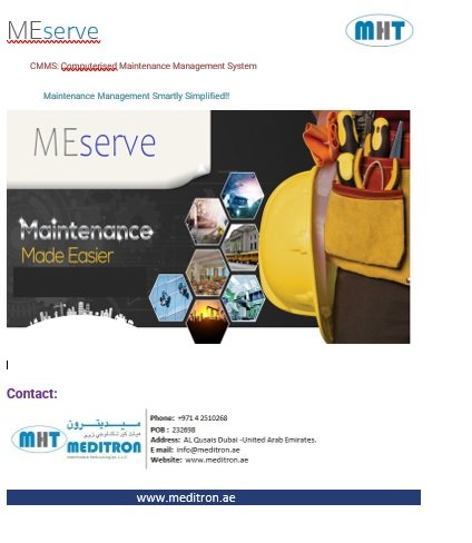 Computerized Maintenance Management System (CMMS): Maintenance plays a major role in keeping the hospital or clinic facility running in an orderly fashion. Medical facilities can use our ASSET management software MEserve to help track maintenance on assets and expensive equipment.